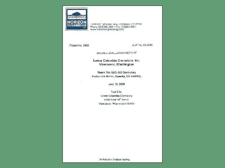 Particulate Matter • A typical high-volume crematory emits less than ½ as many particulates as – A Fast Food Restaurant – A residential fireplace produces 6 times more particulates than that of a high-volume crematory • High-volume is 260 - 8 -Hr. Days per year or 1300 cases per year • Parker Mortuary will produce 204 cases per year operating at 15. 7% the amount of high-volume