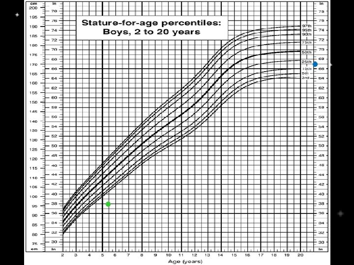 Exame Físico • • • Exame físico segmentar geral; Procura por estigmas genéticos; Peso e estatura preferencialmente na mesma balança, com o mesmo examinador e o mesmo estadiômetro; Desenvolvimento puberal; Outras medidas: PC, envergadura, relação SS/SI; Gráfico adequado: 3º ao 97º P (-2 a +2 DP).