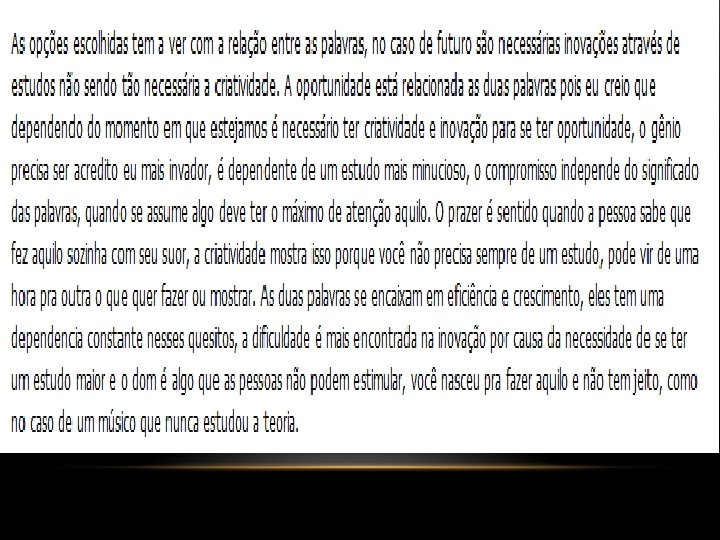 “Processo de mudança, de desenvolvimento, de evolução na organização da vida subjetiva” Ghiselin (1952) “Criatividade é o processo que resulta em um produto novo, que é aceito como útil, e/ou satisfatório por um número significativo de pessoas em algum ponto no tempo" (Stein, 1974) “Criatividade representa a emergência de algo único e original" (Anderson, 1965)
