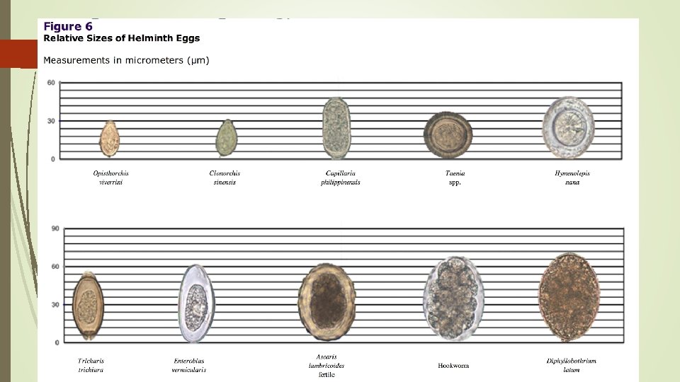 ENTEROBIUS VERMICULARIS laboratorijska dijagnostika : temelji se na nalazu jaja E. vermicularis – a u perianalnom otisku po Grahamu ljepljiva prozirna traka se pritisne u nabore perianalne regije odmah nakon buđenja i ponavlja 3 – 6 puta kroz 10 dana jaja E. vermicularis – a => ovalna, veličine 54 x 20 µm, dvostruko asimetrična – jače zaobljena s jedne strane i na jednom kraju jajete, neobojena i prozirna, kao školjkica vanjska ovojnica je albuminozna i ljepljiva što omogućuje adheriranje jaja na kožu, prste ruke i predmete ponekad : na površini stolice osobe ili na koži se mogu naći ženke male dječje gliste