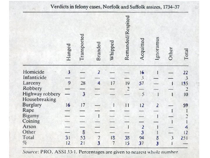 – But • There were four times as many executions in the early C 17 th as there were in 1750 • 50 -60% of those sentenced to death were pardoned (except in years of crisis eg high rate of executions in 1780 s); 90% by early C 19 th • There were only about 20 people a year hung in London and Middlesex at end of century; about 60 for rest of country • Benefit of clergy (1706 reading test abolished; though many crimes specifically exempt eg murder, rape) • Influence of Enlightenment ideas. Jeremy Bentham: punishment should fit crime in a scientific manner • Informal resolution, discretionary system via JPs, who part of a community; jury leniency • Does the flexibility in the system give the elite more power – discretion was empowering? [Frank Mc. Lynn]