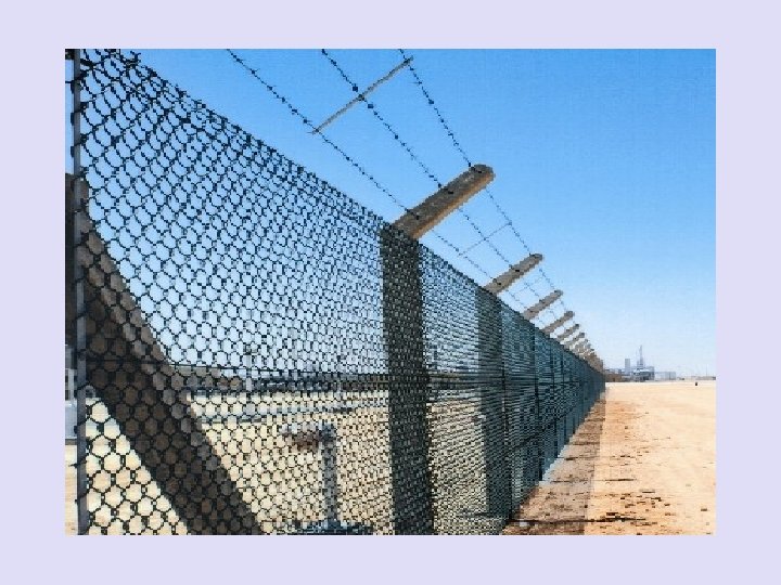 Concepts of Security: Perimeter Barriers - Fences Guidelines for use and installation: n n n Design the fence as straight as possible. Distance between line post should not exceed 8 feet. Fill post holes with concrete