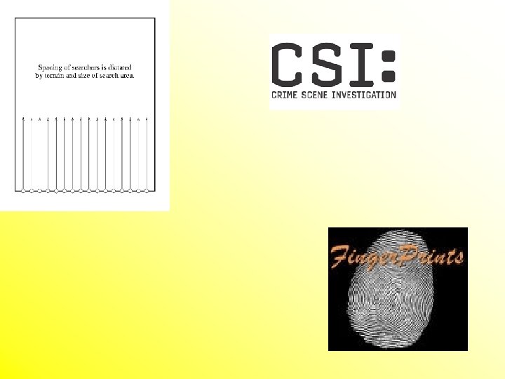 • Crime Scene Search – A systematic search for evidence must be planned and executed. – Types of search patterns • • • Spiral Strip or Line Grid method Quadrant or Zone search Evidence to be collected depends on the crime committed – Evidence that a crime was committed – Evidence of how the crime was committed – Evidence of who committed the crime