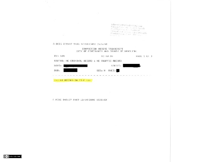 BACKGROUND CHECKS What Appears on the Check 1. Bureau of Criminal Identification and 4. Investigation (“BCI&I” or just “BCI”) check 5. Expunged Offenses Your county’s Conviction Record Transcript (“Police Check” or “Blue Sheet”) Your county’s clerk-of-courts’ website 2. (e. g. , www. courtclerk. org) Private, commercial background check 3. (e. g. Accurint, Hire. Right, Intelius) Penalties Convictions Non. Convictions Background Checks X X 7 yrs X X X X depending on employer Locations Covered by Check Only that county Statewide or Nationwide Statewide