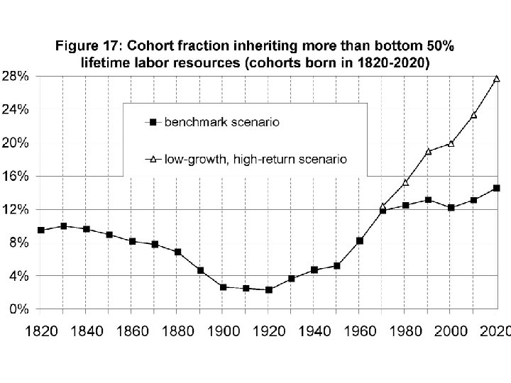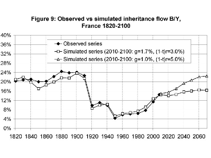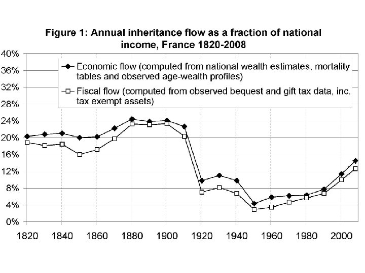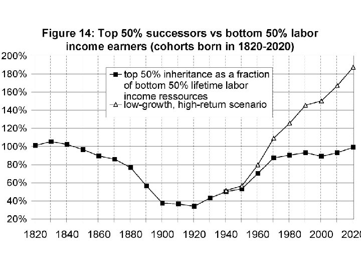 Back to distributional analysis • For cohorts born in the 1910 s-1950 s, inheritance did not matter too much → labor-based, meritocratic society • But for cohorts born in the 1970 s & after, inheritance matters a lot → 21 c closer to 19 c rentier society than to 20 c merit society • The rise of human capital was an illusion. . especially with a labor-based tax system