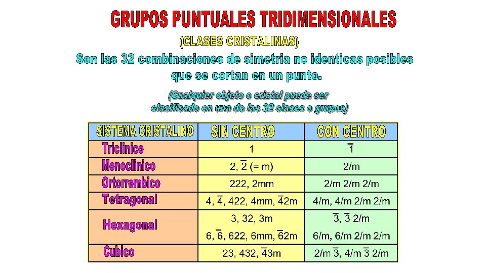 Cristalografa Simetra y clases cristalinas 2007 CLASIFICACIN DE