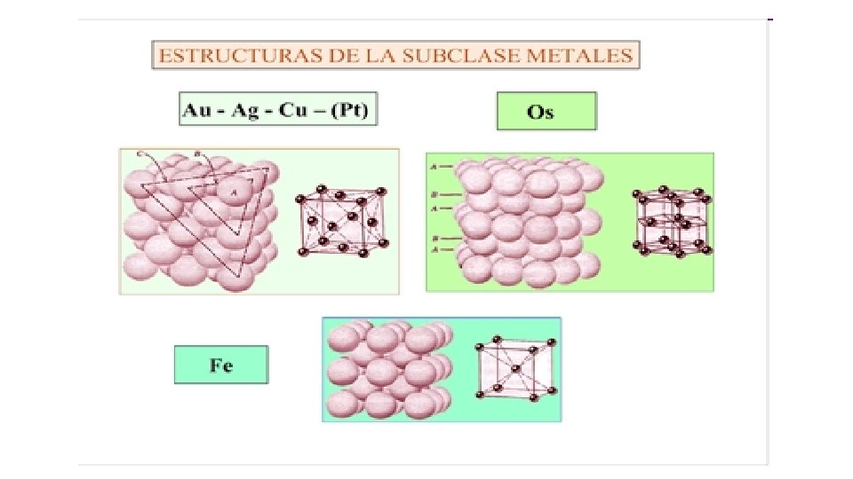 PROPIEDADES DE LOS METALES NATIVOS • Dúctiles, maleables, séctiles, blandos • Buenos conductores del calor y la electricidad • Brillo metálico • Fractura astillosa • Puntos de fusión más bien bajos • Tienen densidades elevadas • Cristalizan en el sistema cúbico, con redes cúbicas centrada en las caras con átomos idénticos de coordinación 12