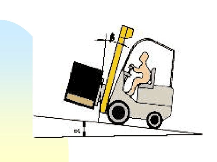 CIRCULACIÓN POR RAMPAS Se han de seguir los siguientes criterios: n Si la pendiente tiene una inclinación inferior a la máxima de la horquilla se podrá circular de frente en el sentido de descenso, con la precaución de llevar el mástil en su inclinación máxima. n Si el descenso se ha de realizar por pendientes superiores a la inclinación máxima de la horquilla, el mismo se ha de realizar necesariamente marcha atrás. n El ascenso se deberá hacer siempre marcha adelante.