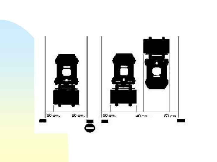 LOCALES DE TRABAJO n PASILLOS DE CIRCULACIÓN: u Su anchura no debe ser inferior en sentido único a la anchura del vehículo o a la de la carga incrementada en 1 metro. u La anchura para el caso de circular en dos sentidos en forma permanente, no debe ser inferior a dos veces la anchura de los vehículos o cargas incrementado en 1, 40 metros.