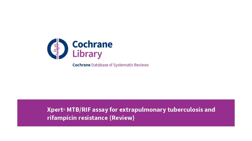 Aim • To determine the diagnostic accuracy of Xpert for extrapulmonary TB by site of disease in people presumed to have extrapulmonary TB • • Diagnostic accuracy of Rifampicin resistance in people presumed to have extrapulmonary TB.