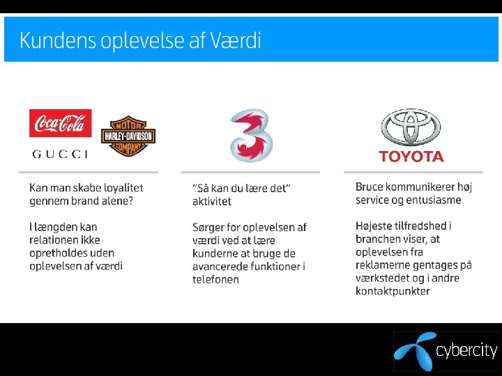 CRM – værdi for virksomheden ”Almost anyone will agree, that true customer loyalty is a substantial intangible asset for a company, for branded products the most valuable asset of all, because it is the ultimate indicator of future sales and profits” Kilde: Hougaard & Bjerre, Strategic Relationship Marketing, 2002.