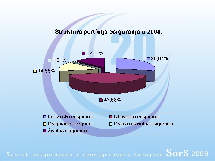 TRENDOVI – PREDVIĐANJA ZA 2009. g. • Jačanje zakonske regulative u oblasti osiguranja • Prilagođavanje poslovanja uslovima krize • Dominantna uloga obaveznih osiguranja u strukturi premije • Umjereniji rast tržišta životnih osiguranja