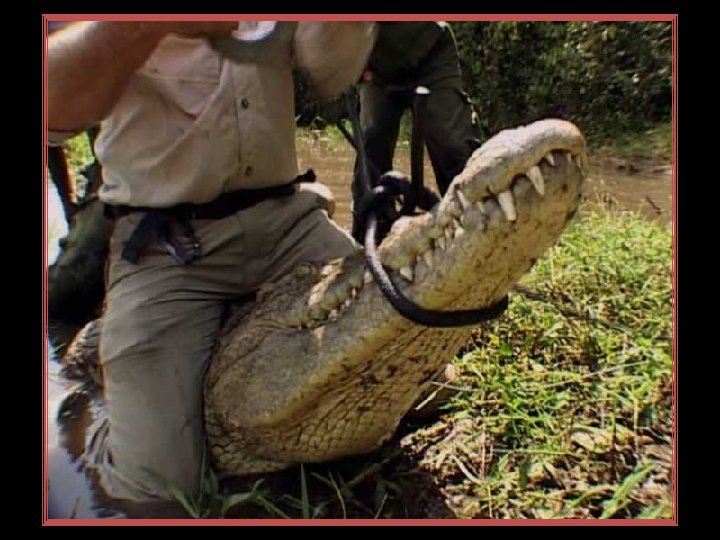 Noua atitudine Este trist ca numeroase specii din ordinul crocodilienilor, dupa ce au reusit sa supravietuiasca timp de 200 milioane de ani, acum in secolul XX au ajuns pe calea disparitiei complete din cauza omului. in ultimul timp, temutii vanatori au ajuns sa fie vanati, si acum sunt in pericol pe toate ariile de raspandire -Africa, Asia, Australia si America de Sud. fost sapat cu dintii de un crocodil