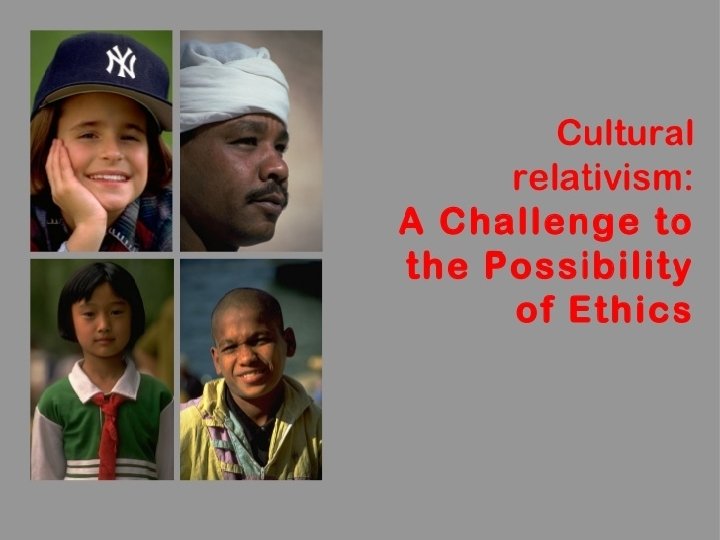 Cultural Relativism: reflections • Practices that produce good results in one culture may not produce good results in another, e. g. polygamy. • Actions that are wrong may be excusable and people that do them may not be blameworthy. • Even if an action is wrong, it doesn’t follow that it would be right to stop people from doing it.