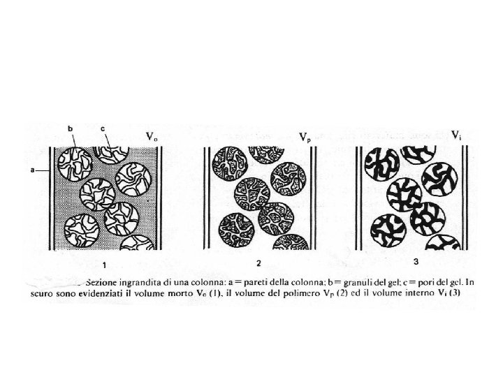 Cromatografia di esclusione Separazione dei componenti di una miscela sulla base delle loro dimensioni molecolari Ø La fase stazionaria è, in genere, un polimero allo stato di gel caratterizzato da pori di dimensioni molto variabili Ø La fase mobile può essere un solvente organico oppure acqua o una soluzione tampone. Nel primo caso la tecnica prende il nome di Gel Permeation Chromatography (GPC), mentre nel secondo di Gel Filtration Chromatography (GFC).