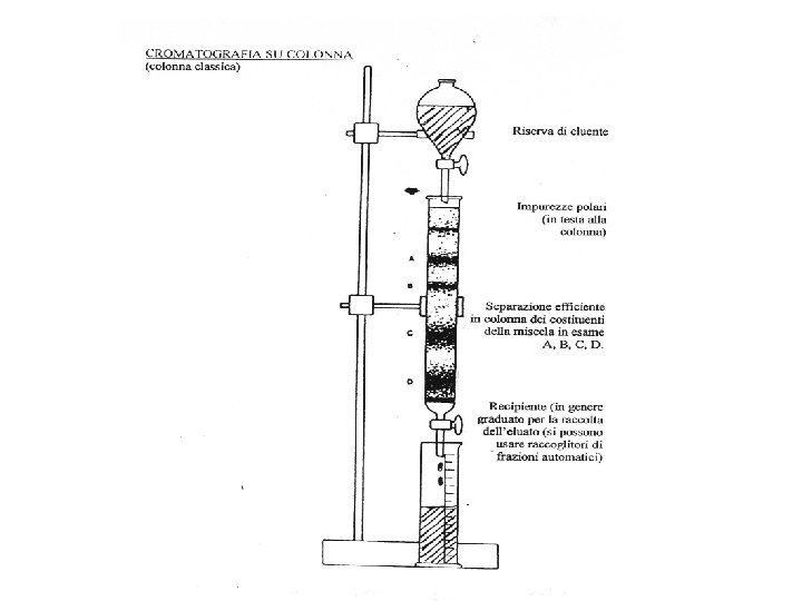 Coefficiente di distribuzione ü Cm e Cs concentrazione della sostanza nella fase mobile e nella fase stazionaria ü K la costante di equilibrio dipende il grado di ritenzione di una specie chimica : serie ripetuta di processi estrazione
