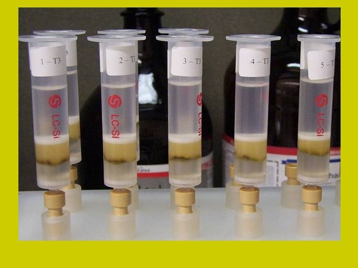 Metanólise Alcalina Branda • Pesar 3 g de solo em tubo centrífuga de 35 ml com tampa revestida de Teflon; • Adicionar 15 ml de KOH (0, 2 N) em metanol; • Agitar em vortex e incubar a 37 o. C por 1 h (transesterificação, idêntica à do PLFA) • Agitar tubos em vortex a cada 10 min. durante o tempo de incubação. • Adicionar 3 ml de ácido acético 1, 0 M para neutralizar p. H do conteúdo do frasco