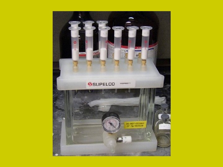Saponificação • Pesar 3 g de solo em tubo de de vidro (20 ml) com tampa de rosca revestida com Teflon; • Adicionar 3 ml de solução de Na. OH (3, 8 N) em água: metanol (1: 1 v/v); • Agitar em vortex e ferver por 30 min. • Produto: sais de sódio de cadeia longa (sabão)
