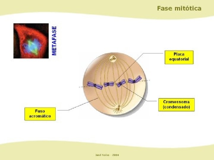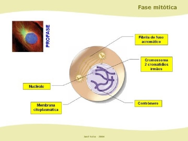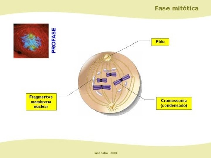 Meiose: Prófase II Os cromossomos condensam-se, desaparecem os nucléolos e surge o fuso acromático. A carioteca começa a desorganizar-se e os cromossomos espalham-se pelo citoplasma, prendendo-se a fibras do fuso acromático pelo centrômeros.