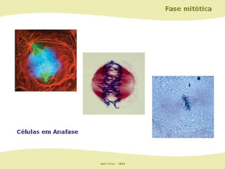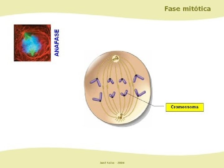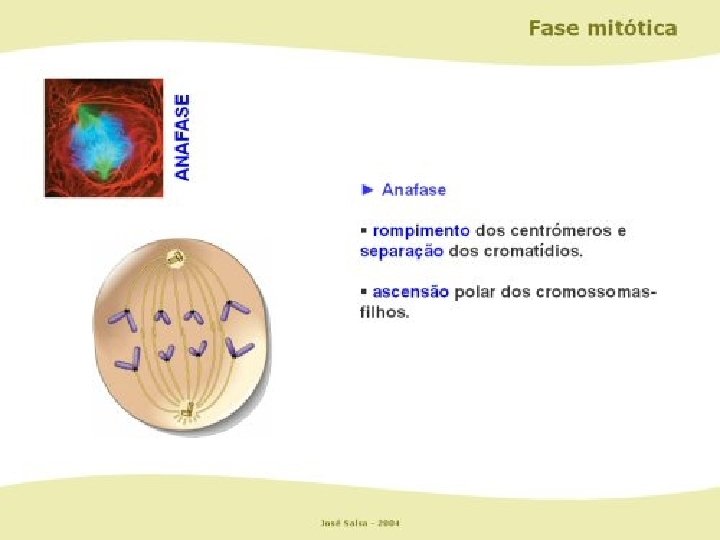 Meiose: Anáfase II Os centrômeros estão duplicados, e ocorre a separação das cromátides-irmãs, tracionadas pelas fibras do fuso.