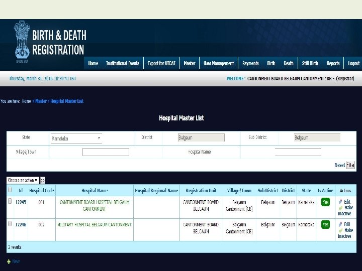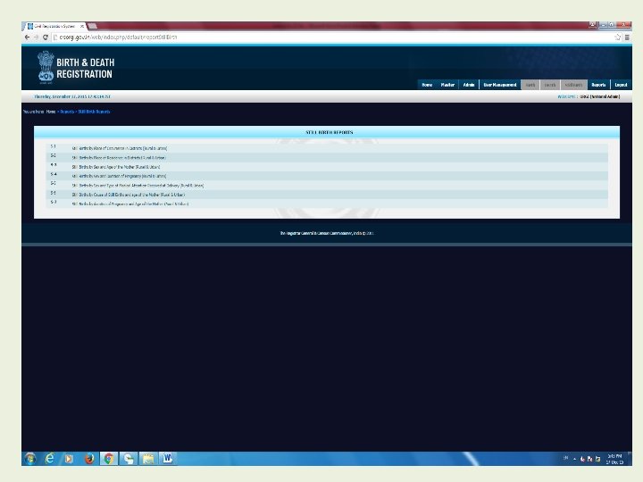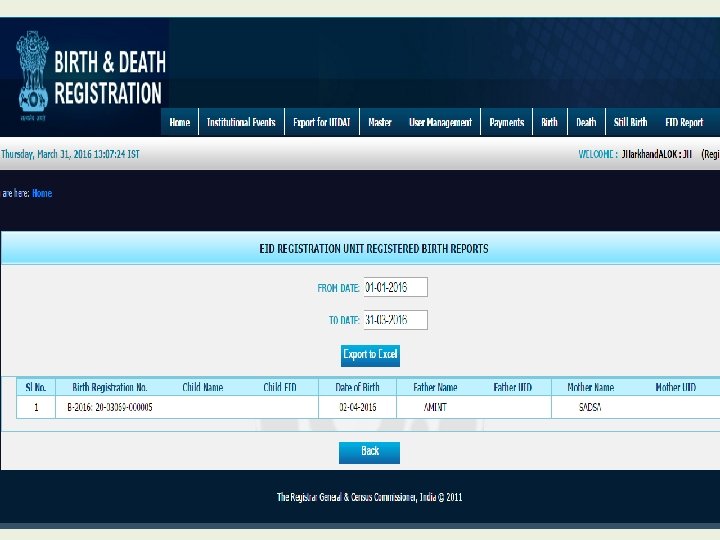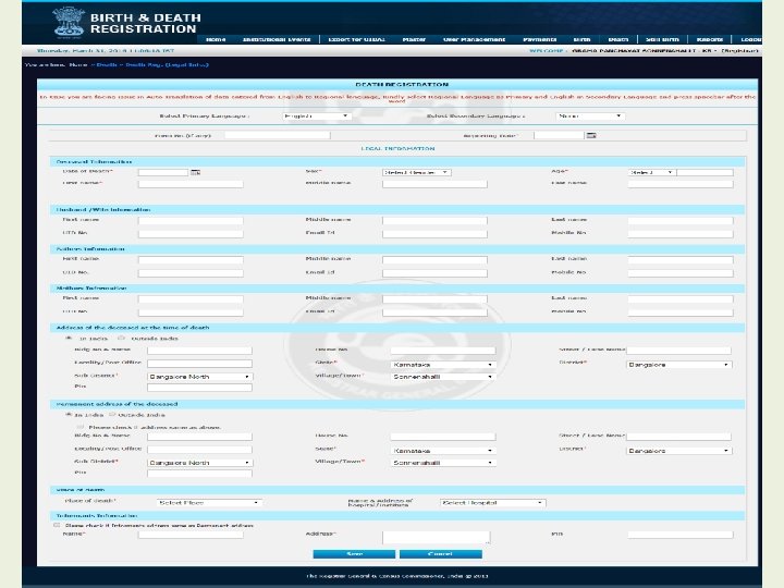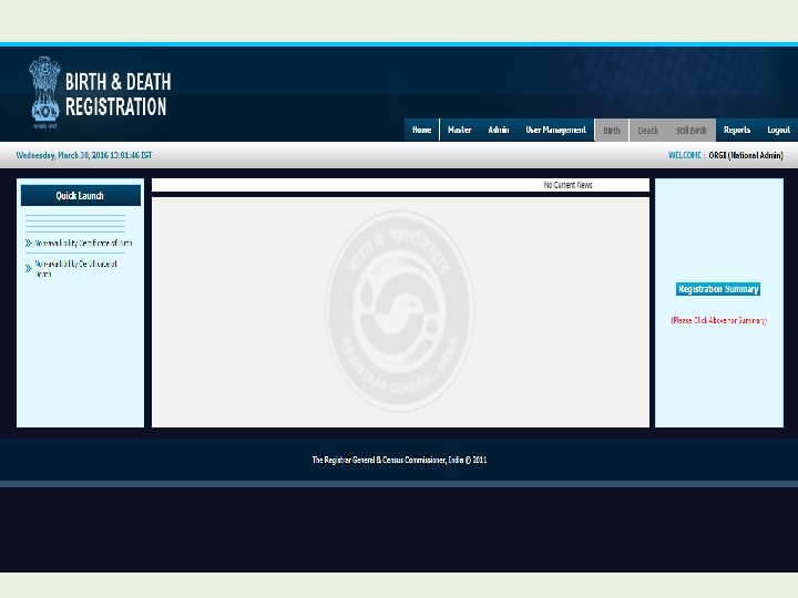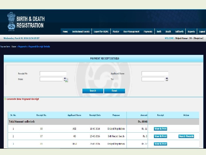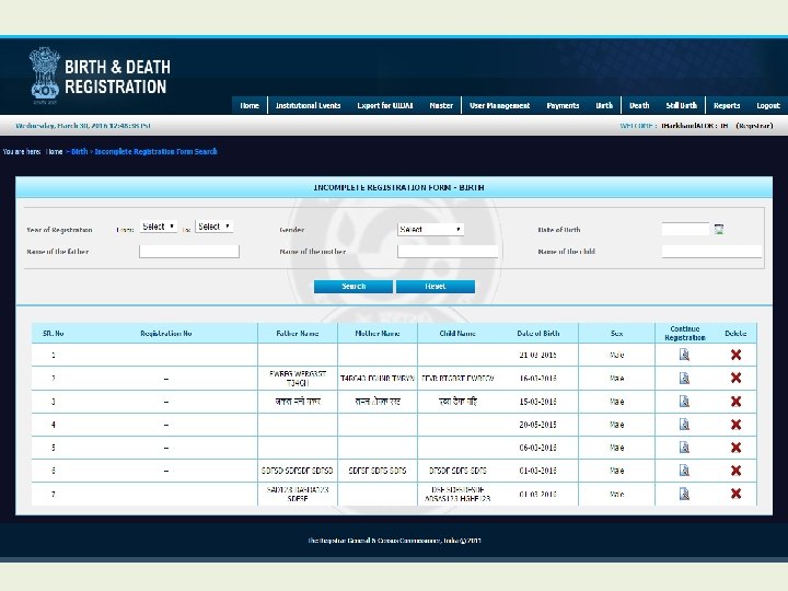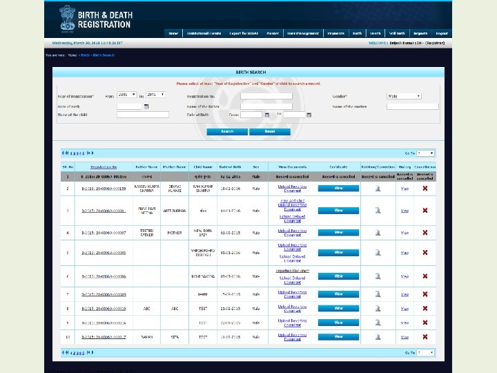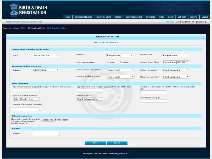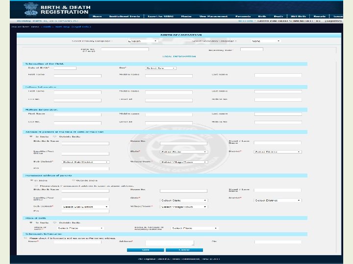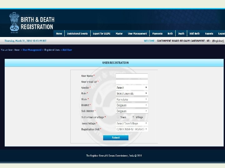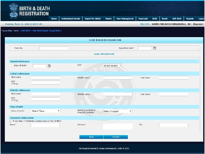 Modules for Registrar • • • Home Institutional Events Export for UIDAI Master User Management Payment Birth Death Still Birth Reports