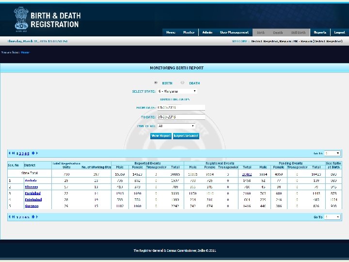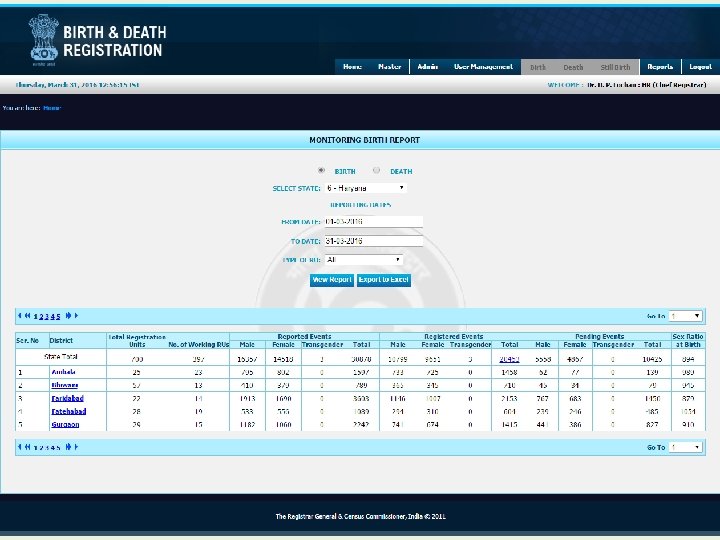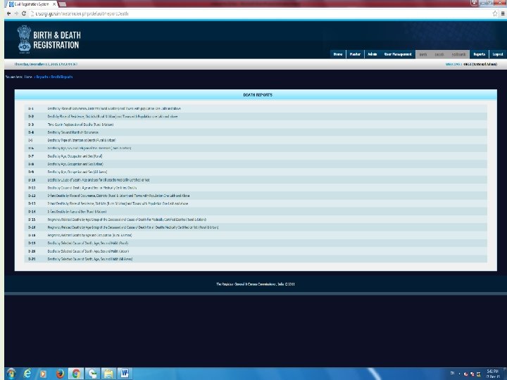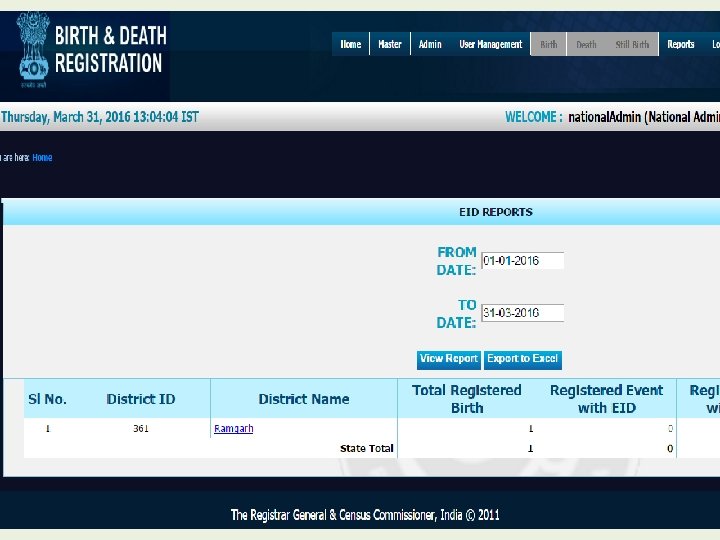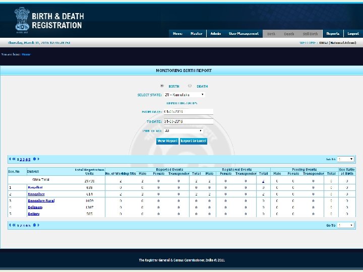 Reports at National Level Login as O/o RGI