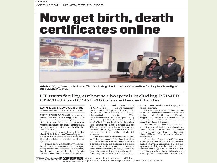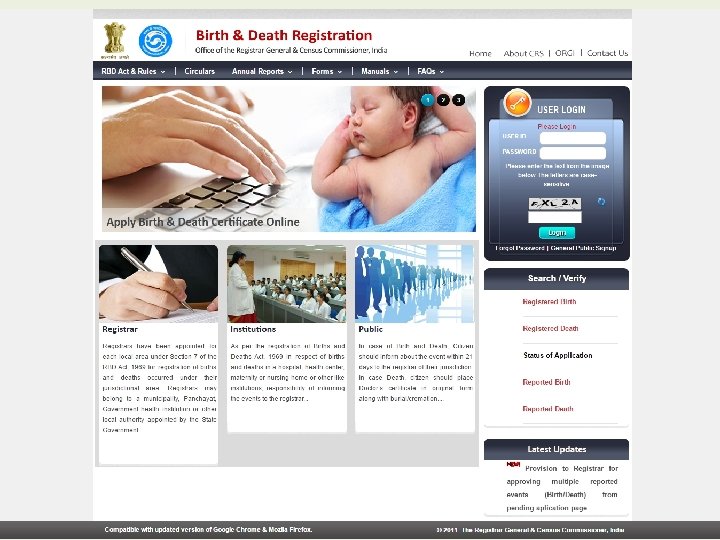 Facilities available to Public and User Departments Search / Verify Birth / Death Certificates