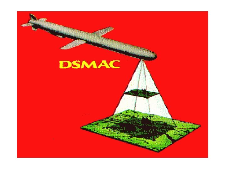 DSMAC(Digital scene-mapping area correlator): • A series of photographs are taken from surveillance aircraft and are put into a carousel in the missile. • Another camera takes pictures out of the bottom of the missile. • A computer compares the two images and attempts to line up areas of high contrast. • This system is very slow and its role is being taken up by TERCOM.