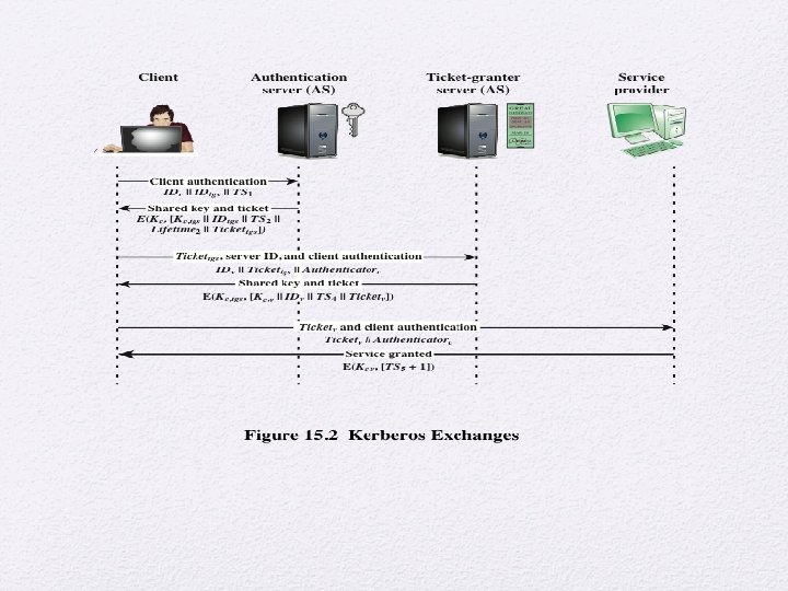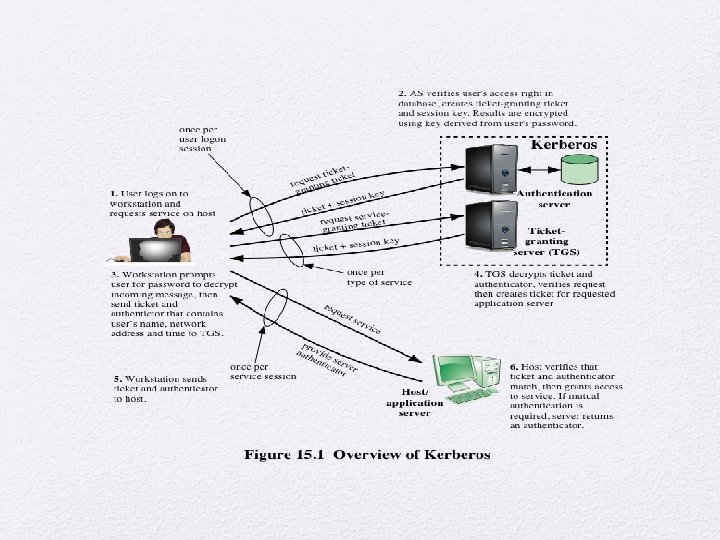 V 4 Authentication Dialogue The lifetime associated with the ticket-granting ticket creates a problem: � If the lifetime is very short (e. g. , minutes), the user will be repeatedly asked for a password � If the lifetime is long (e. g. , hours), then an opponent has a greater opportunity for replay A network service (the TGS or an application service) must be able to prove that the person using a ticket is the same person to whom that ticket was issued Servers need to authenticate themselves to users