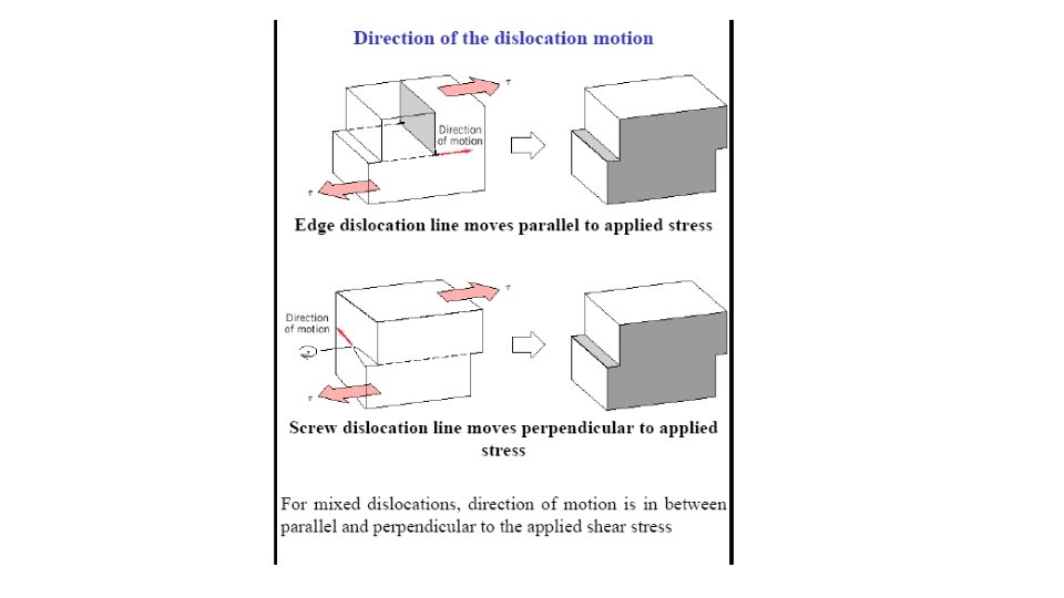 STRESS AND DISLOCATION MOTION • Crystals slip due to a resolved shear stress, t. R. • Applied tension can produce such a stress. slip plane normal, ns n p sli rec di tio n o i p t sli rec di p sli rec di tio n