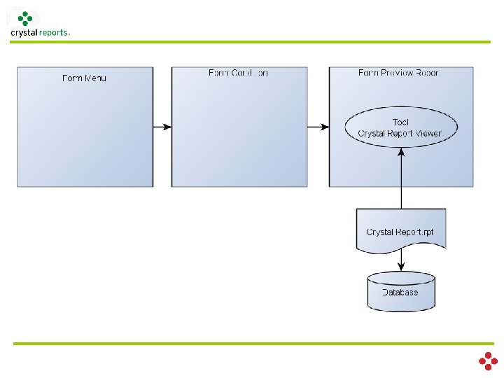 Crystal Report �������� Database Run SQL Database Crystal Report Call Report Program Add Data to Report Program Crystal Report