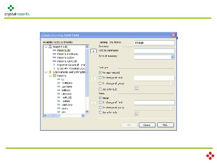 Field : Running Total Fields