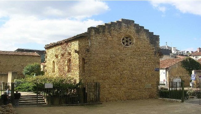 Ancienne chapelle romane près du donjon, vue de la passerelle sur le Midou