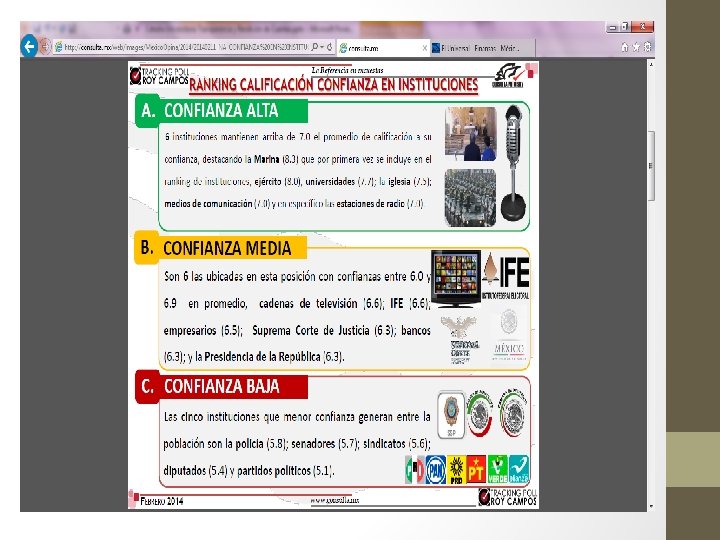 La rendición de cuentas en México Diagnóstico: 5) La ausencia de mecanismos efectivos de rendición de cuentas ha impactado la confianza y credibilidad de los ciudadanos en las principales instituciones del país.