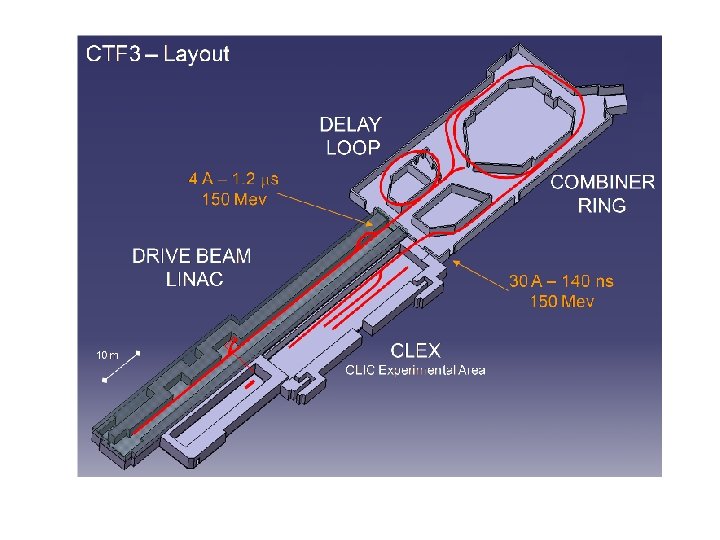 CTF 3 Achievements – What is still missing for feasibility – Drive Beam Generation Ring isochronicity ap < 10 -4 Transverse rms emittance 100 p mm mrad (end of linac) Bunch length control < 1 mm rms (end of linac) Beam current stability ~ 0. 1 % end-of-linac, ~ 0. 2 % combiner ring Factor 2 combination in Delay Loop (from 3. 5 to 7 A) Control of ring length to better than 0. 5 mm Bunch train recombination factor 4 in Combiner Ring (from 3 to 12 A) ~ 0. 06 % end-of-linac ! Full beam loading (95% transfer) high current acceleration (up to 5 A) Bunch train recombination 2 x 4 in DL and CR (from 3. 5 to 28 A) Transverse rms emittance < 150 p mm mrad (combined beam) Bunch length control < 1 mm rms (combined beam) Sub-Harmonic bunching with fast (< 6 ns) 180 phase switch (8. 5% satellites) Beam current stability ~ 0. 1 % for combined beam