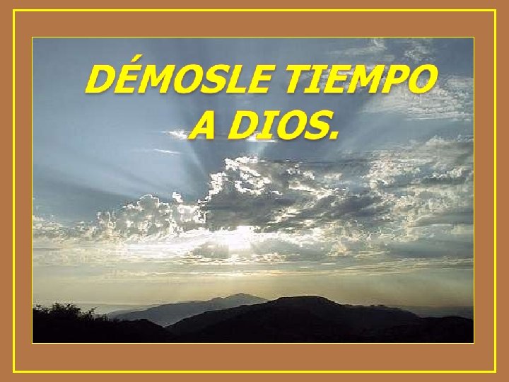 DARLE TIEMPO A DIOS, ES RECORDAR SUS PALABRAS CUANDO NOS DIJO: "BUSCAD PRIMERO EL REINO DE DIOS Y CUANDO HAYÁIS ENCONTRADO LA PUERTA DE ENTRADA, TODAS LAS DEMÁS COSAS SE OS DARÁN POR AÑADIDURA. NO OS PONGÁIS ANSIOSOS POR EL MAÑANA, PUES A CADA DÍA LE BASTA SU PROPIO AFÁN"