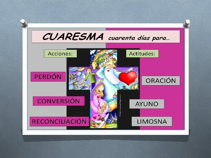 Con el ayuno nos solidarizamos con los que pasan hambre y nos privamos de lo que no necesitamos: un rato de televisor, comprarme algo, comer chuches o comer de más… Limosna compartir con los más pobres lo que tenemos, no lo que nos sobra. También dar una parte del propio tiempo como servicio para alguien que lo necesite: sea ayudando a una persona que vive sola, o visitando a un enfermo o a través de alguna institución que pida voluntariado. Oración buscar momentos para hacer presente ante el Señor nuestras ansias y esperanzas de cada día, nuestra petición de ayuda y de perdón, nuestro deseo de fidelidad al Evangelio. Dependerá de las posibilidades de tiempo y de tranquilidad de cada uno, pero en cualquier caso habría que esforzarse por encontrar esos espacios.