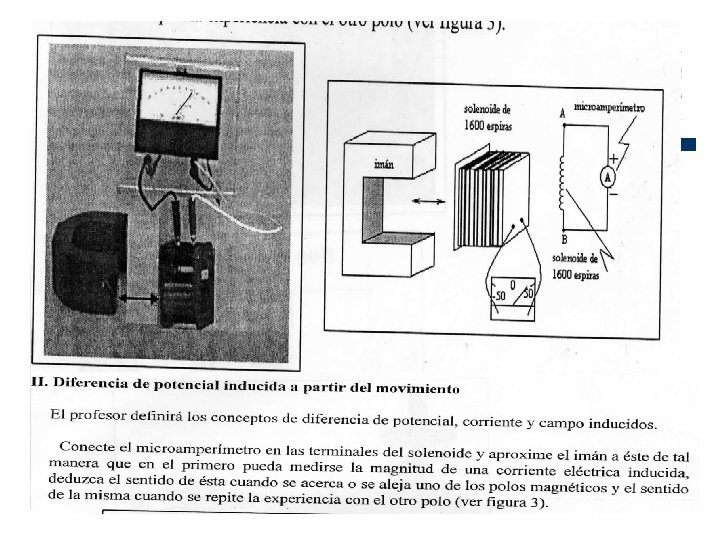 Actividad 4. Fuerza electromotriz inducida a partir del movimiento. Corriente inducida -50 Disminuye N FEM INDUCI DA 0 50 N Aumenta S S MICROAMPERIMETRO Conecta la bobina al amperímetro. Acerca y aleja el polo norte del imán de herradura. ¿Hay corriente inducida? . Si se acerca el polo norte del imán ¿Es positiva o negativa la corriente? Investiga el sentido de enrollamiento y aplicar la ley de Lenz. Si se aleja el polo norte del imán ¿Es positiva o negativa la corriente?