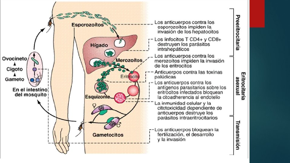 Sistema Neurológico En el eritrocito, el parásito consume y degrada las proteínas intracelulares. Alterando la membrana del eritrocito y modificando sus propiedades de transporte, disminuyendo su capacidad de deformación y formando protuberancias adhesivas. Rosetas Aglutinamiento Afines a los receptores molécula 1 de adhesión intercelular en el cerebro.