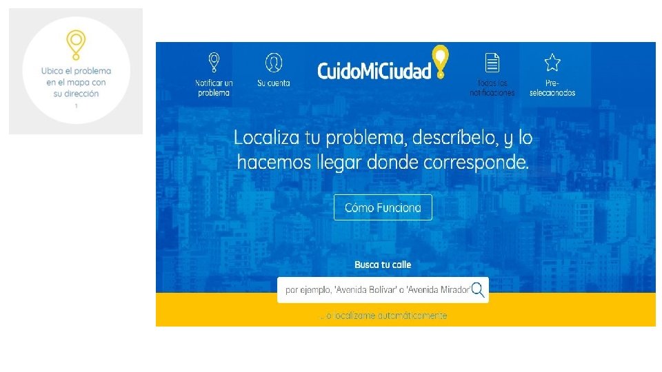 Visión del Proyecto ADN – Banco Mundial o Las ciudades son un reflejo de su gente. Cada vez más sus habitantes buscan ejercer un rol en el rumbo que toma la ciudad y en cómo interactúan los ciudadanos con su gobierno. o Ciudades inteligentes e innovadoras aprovechan el poder de las tecnologías digitales para empoderar a sus ciudadanos, abrir canales de comunicación y ayudar a los gestores y planificadores de la ciudad a tomar decisiones acertadas. o Nuevas herramientas digitales como Cuido. Mi. Ciudad le permiten a los ciudadanos tomar un rol activo en la “gobernanza urbana”, fortaleciendo así, la democracia representativa.