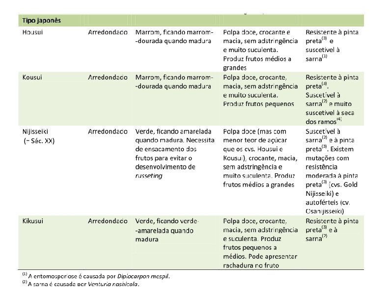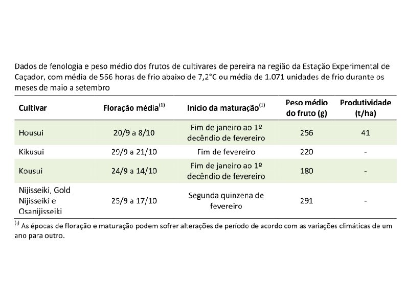 PERA HOSUI Variedade Japonesa, com padrão de qualidade e de melhor adaptação entre as variedades Orientais. Frutos redondos dourados de excelente qualidade, delicados. Maturação em janeiro/fevereiro. Boa capacidade de armazenamento. Produzimos mudas enxertadas sobre Marmeleiro CV e seleções de Caleriana. PERA CASCATENSE Floração precoce, frutas grandes, lisas, uniformes, maturação em janeiro, sabor próximo das peras Européias. Tem mostrado bom desempenho em muitas localidades do Sul e Sudeste quando enxertada sobre o Marmelo CV. http: //cloneviveiros. com. br/site/Pera