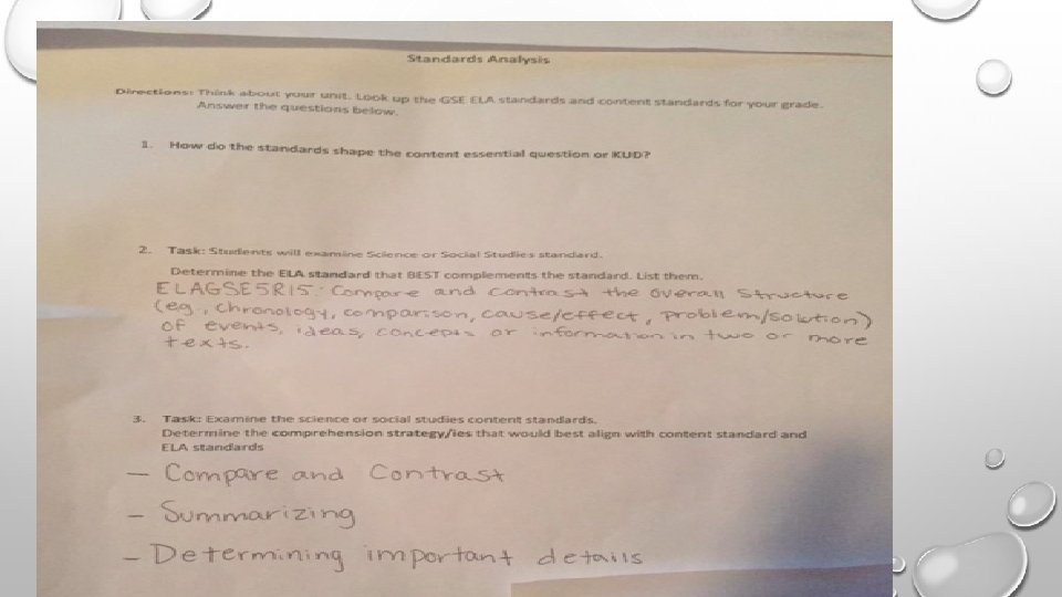 Integrating Literacy in Content Area: Standard Analysis/CONTENT MAPPING Choose a Science or Social Studies Topic: Choose the appropriate Science or Social Studies Standard: Determine ELA standard to support Science or Social Studies Standard: Determine Comprehension strategy/(ies) that aligns with the standards: ex. questioning, determining importance, making connection, visualizing/inference, synthesizing/summarizing