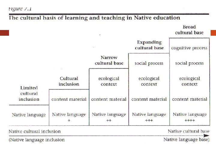 Foundations for Northern Education Northern students’ lack of educational success can be attributed to degree the inability of northern schools to meet the learning needs of their Indigenous citizens through the experiences offered and pedagogies used in classrooms (Stairs, 2002). This failure includes not only resource and language materials appropriate for each context, but also, more importantly, the culturally located pedagogy that moves beyond the what (content) of classrooms to the how (pedagogy) and why (purpose of) of classrooms. The formal, informal and unspoken learning of schools (what, how and why) is, often, radically different from the valued learning of home culture and that successful classrooms are likely to reflect these home and community practices (Stairs, 2002).