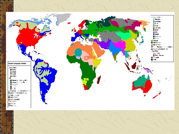Language allows people to share ideas One of the strongest unifying forces for culture Languages spoken in a culture region often belong to the same language family Language family = languages start the same way Example: Romance languages came from Latin – Spanish, Portuguese, French, Italian and Romanian