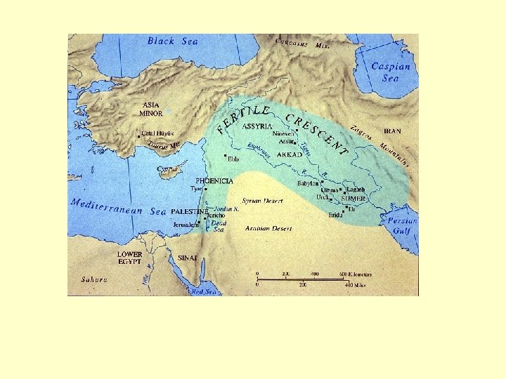 Mesopotamia • As early as 500 B. C people were farming in Southern Mesopotamia. This flat swampy region was well suited for agriculture. • The Tigris and Euphrates rivers often flooded there in the spring. • The floods left behind a fertile mud called silt, which enriched the soil. • It’s geography led to the developing methods to control water.