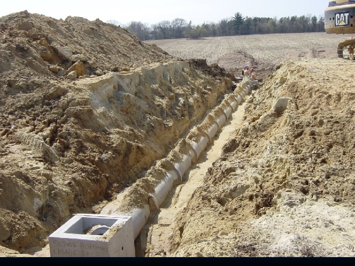 Placing In a Trench 1. Don’t Build Grade Around Pipe. 2. Contractor is Required to Build Grade to 1 Foot Above Top of Pipe. 3. Then Trench is Cut, and Pipe is Placed.