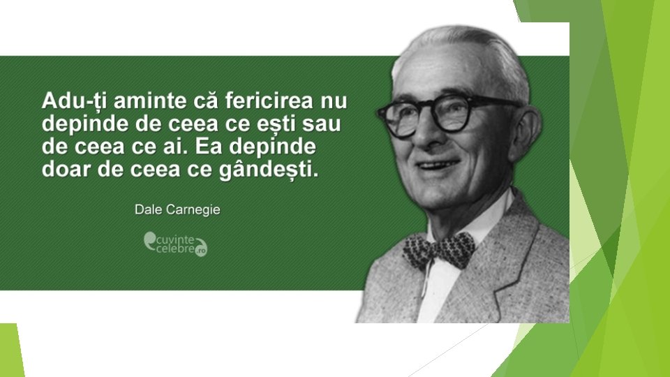 RETETA STIINTIFICA A FERICIRII A face frecvent comportamente care ne produc plăcere („pleasant life”) A face sport, a ieşi cu prietenii etc. (adaptative) A avea dorinţele personale şi transpersonale: Corect orientate Dorinţele personale orientate asupra („good life”): Sănătăţii şi a unui stil de viaţă sănătos Dezvoltării Implicării Dorinţele active în diverse proiecte profesionale şi/sau de viaţă transpersonale orientate asupra („meaningful life”): Dezvoltării Asumării Corect unor relaţii interumane satisfăcătoare unor relaţii transcendente (ex. Dumnezeu, umanitate, univers) unei grile de valori explicite şi ierarhizate, active. formulate Preferenţial, acceptând raţional că s-ar putea să nu se îndeplinească mereu