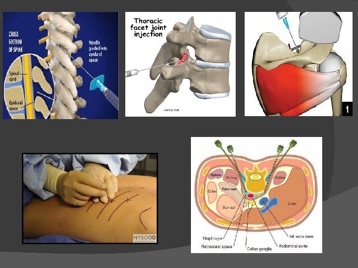� Thoracal - thoracic epidural - thoracic facet joint block - suprascapular nerve block - intercostal nerve block - splancnic nerve block - celiac nerve block