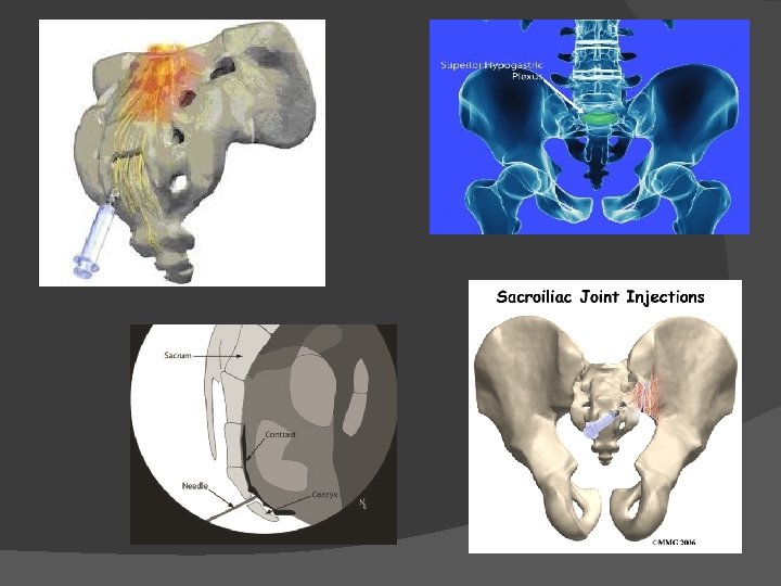 � Pelvic & Sacral - caudal epidural block - superior hypogastric plexus block - ganglion impar block - sacroilliac joint block