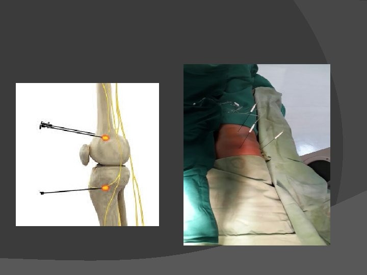 � Kasus 5 Wanita, 67 tahun, mengeluh nyeri sendi lutut kanan sejak 2 tahun. Di diagnosis osteoarthritis grade 3 dan dianjurkan untuk operasi Total knee replacement namun menolak. Genicular nerve neurolysis